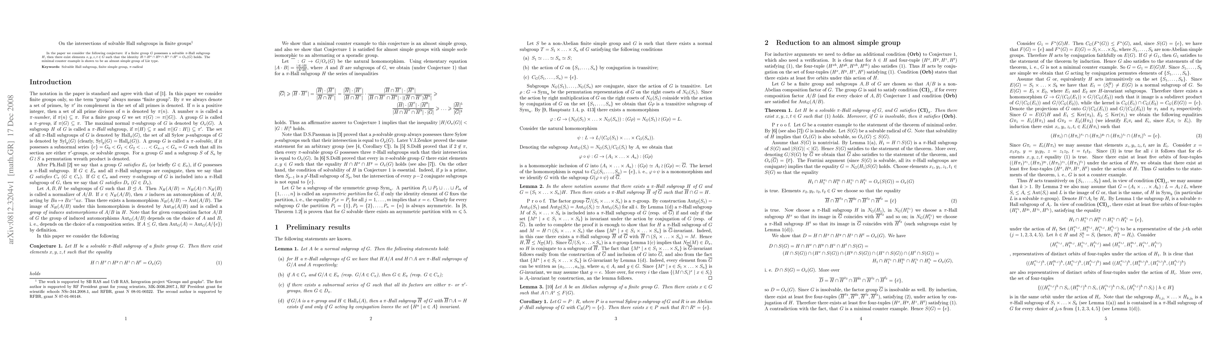Researchers investigated a conjecture about solvable Hall subgroups in finite groups, finding that minimal counterexamples are almost simple groups of Lie type. They showed the existence of specific elements satisfying a certain intersection condition.