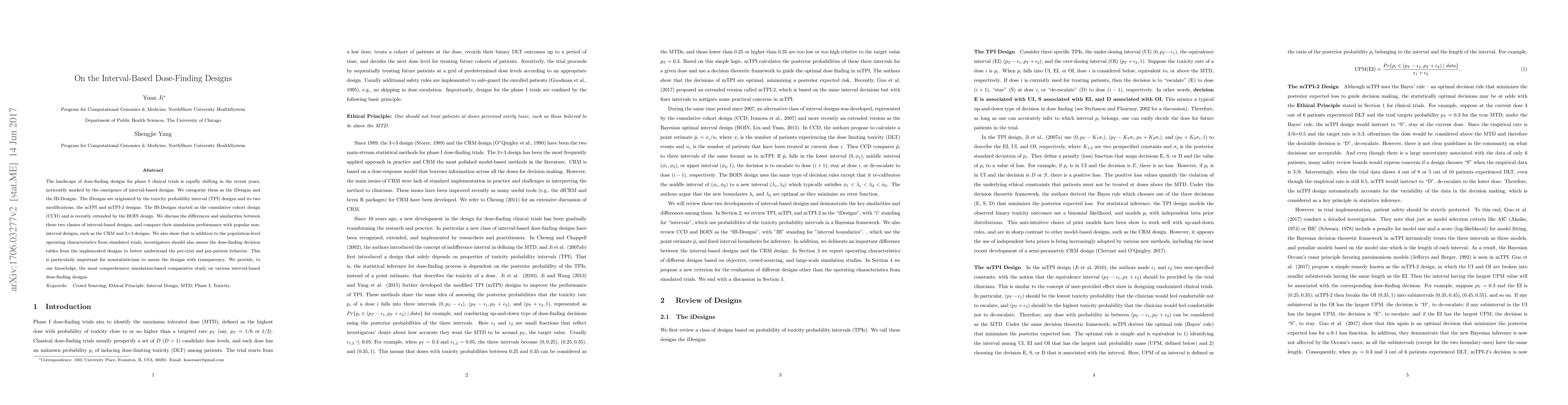 The landscape of dose-finding designs for phase I clinical trials is rapidly shifting in the recent years, noticeably marked by the emergence of interval-based designs. We categorize them as the iDesigns and the IB-Designs. The iDesigns are originated by the toxicity probability inter- val (TPI) designs and its two modifications, the mTPI and mTPI-2 designs. The IB-Designs started as the cumulative cohort design (CCD) and is recently extended by the BOIN design. We discuss the differences and similarities between these two classes of interval-based designs, and compare their simulation performance with popular non-interval designs, such as the CRM and 3+3 designs. We also show that in addition to the population-level operating characteristics from simulated trials, investigators should also assess the dose-finding decision tables from the implemented designs to better understand the per-trial and per-patient behavior. This is particularly important for nonstatisticians to assess the designs with transparency. We pro- vide, to our knowledge, the most comprehensive simulation-based comparative study on various interval-based dose-finding designs.