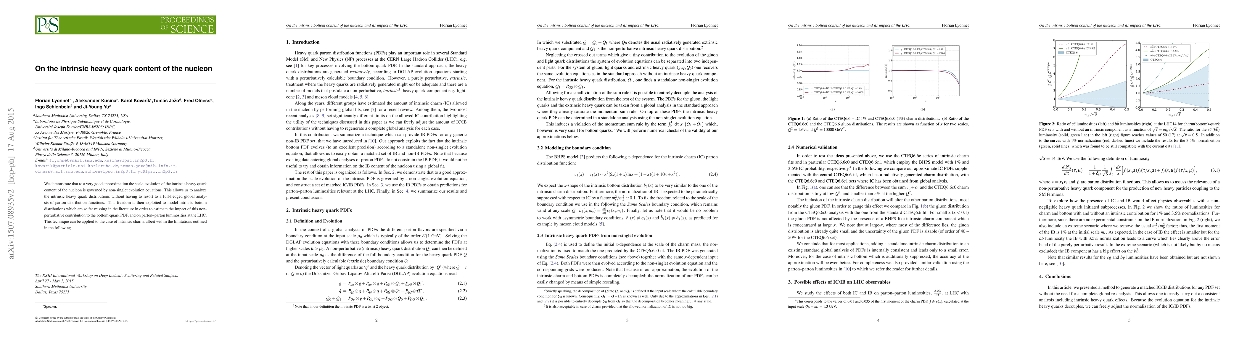 This paper demonstrates that intrinsic heavy quark content in nucleons follows non-singlet evolution, allowing for independent analysis of intrinsic heavy quark distributions. The authors model intrinsic bottom distributions to estimate their impact on bottom-quark PDFs and LHC parton luminosities, extending the technique to intrinsic charm.