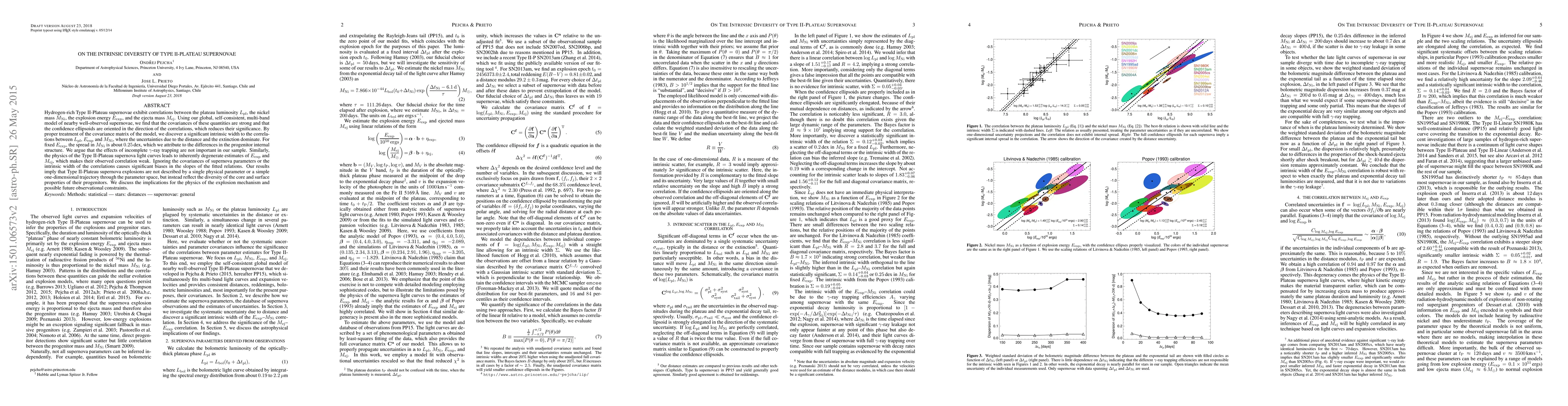 This paper reveals significant intrinsic diversity in Type II-Plateau supernovae, showing that correlations between luminosity, nickel mass, explosion energy, and ejecta mass are influenced by the covariances and intrinsic widths of these parameters. The study highlights the importance of considering these factors to avoid biases in understanding the explosion mechanisms and progenitor properties.