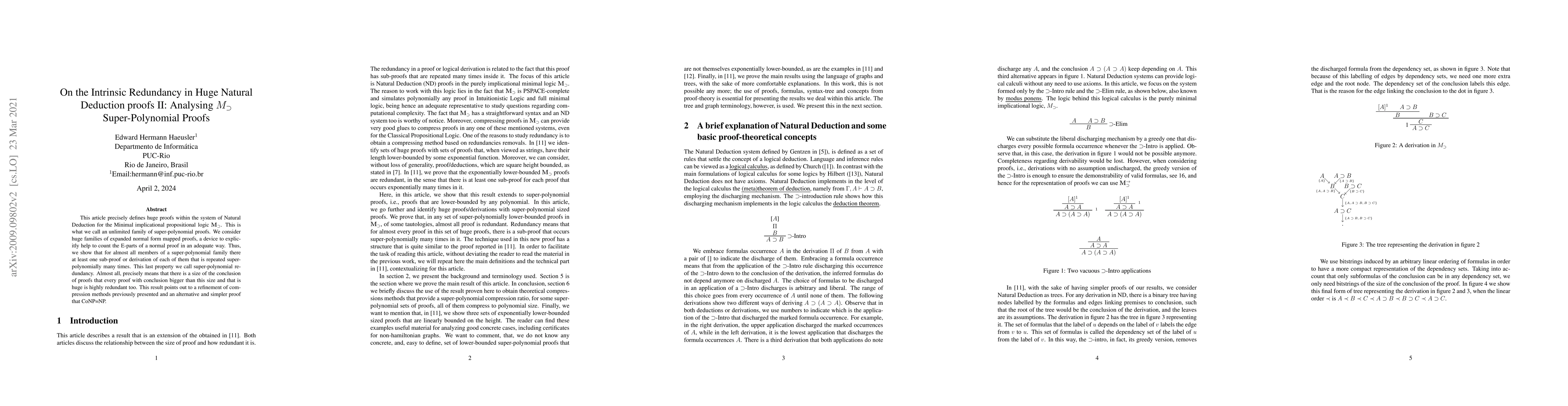This paper defines huge proofs within Minimal implicational propositional logic and demonstrates that almost all super-polynomial proofs exhibit significant redundancy, suggesting a refinement of compression methods and a simpler proof for CoNP=NP.