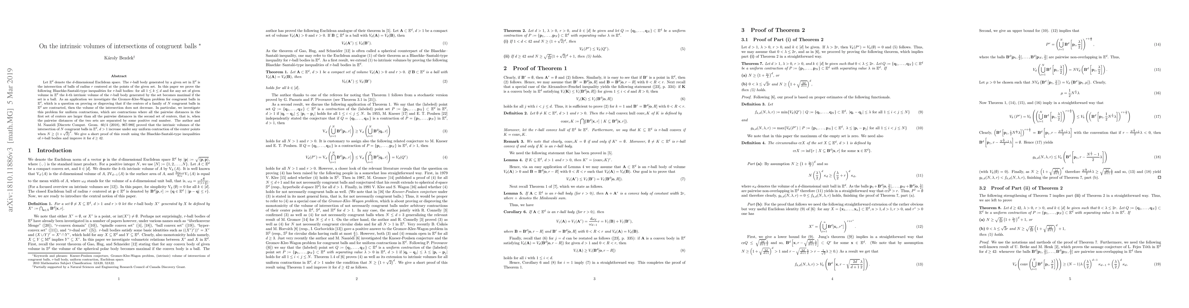 This paper proves that for d-dimensional space, the intrinsic volumes of r-ball bodies generated by a set become maximal when the set is a ball. It also improves an existing result on the Gromov-Klee-Wagon problem for congruent balls.