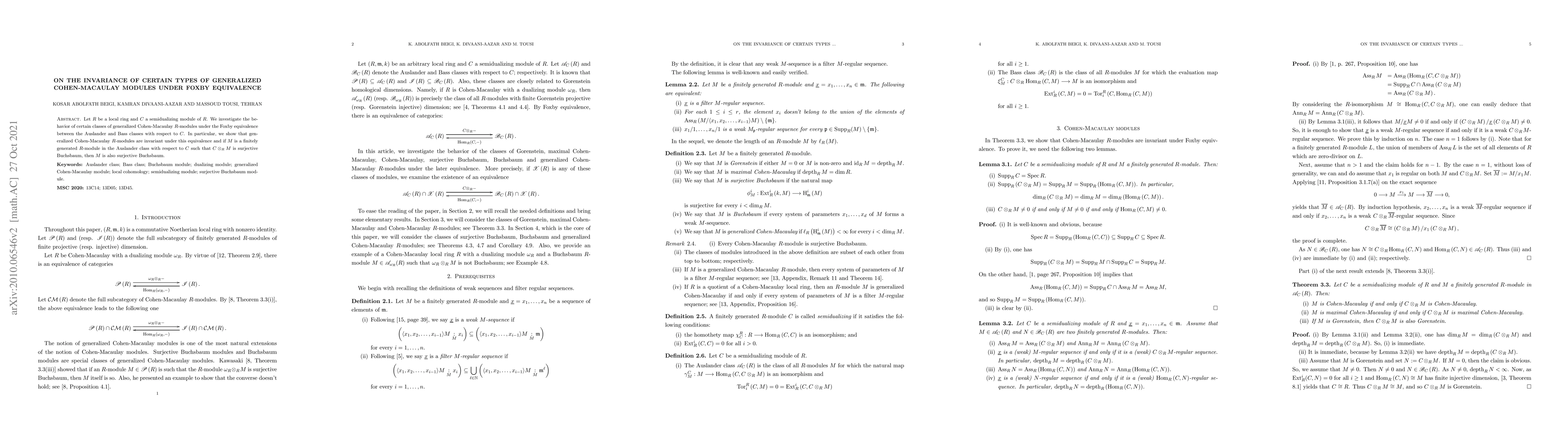 Let R be a local ring and C a semidualizing module of R. We investigate the behavior of certain classes of generalized Cohen-Macaulay R-modules under the Foxby equivalence between the Auslander and Bass classes with respect to C. In particular, we show that generalized Cohen-Macaulay R-modules are invariant under this equivalence and if M is a finitely generated R-module in the Auslander class with respect to C such that C\otimes_RM is surjective Buchsbaum, then M is also surjective Buchsbaum.
