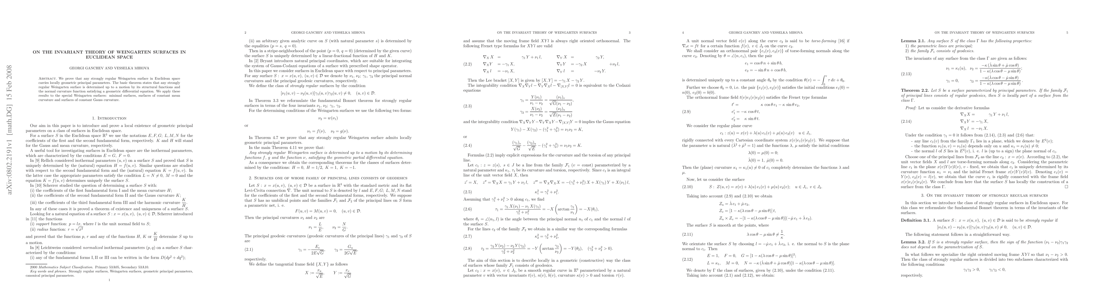 This paper proves that strongly regular Weingarten surfaces in Euclidean space possess locally geometric principal parameters, and establishes that such surfaces are uniquely determined by their structural functions and normal curvature function through a geometric differential equation. The results are applied to minimal surfaces, surfaces of constant mean curvature, and surfaces of constant Gauss curvature.