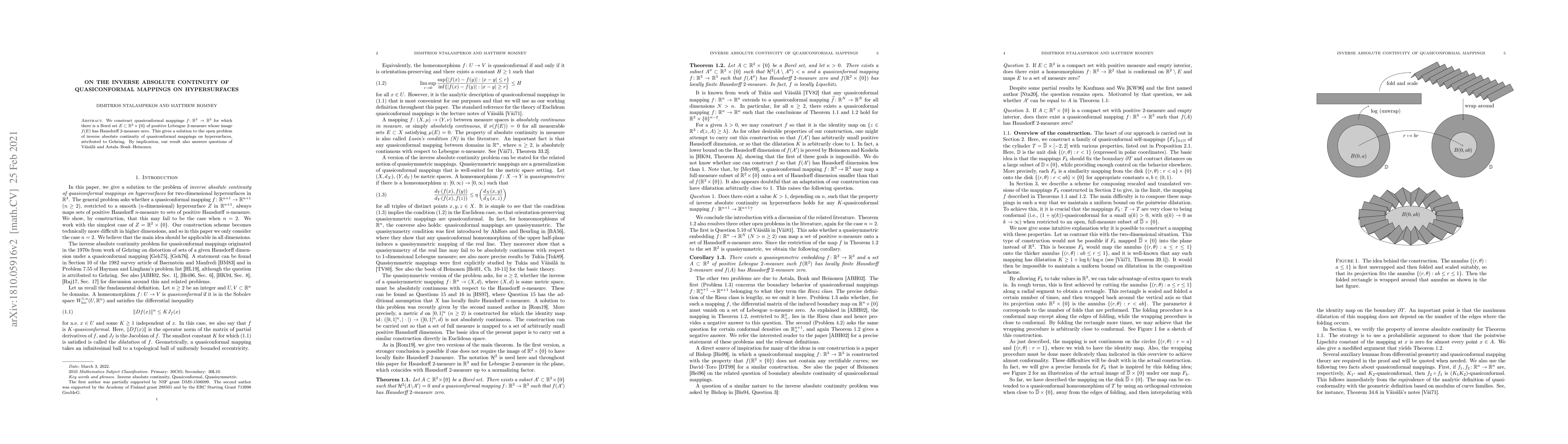 We construct quasiconformal mappings $f\colon \mathbb{R}^{3} \rightarrow \mathbb{R}^{3}$ for which there is a Borel set $E \subset \mathbb{R}^2 \times \{0\}$ of positive Lebesgue $2$-measure whose image $f(E)$ has Hausdorff $2$-measure zero. This gives a solution to the open problem of inverse absolute continuity of quasiconformal mappings on hypersurfaces, attributed to Gehring. By implication, our result also answers questions of V\"ais\"al\"a and Astala--Bonk--Heinonen.