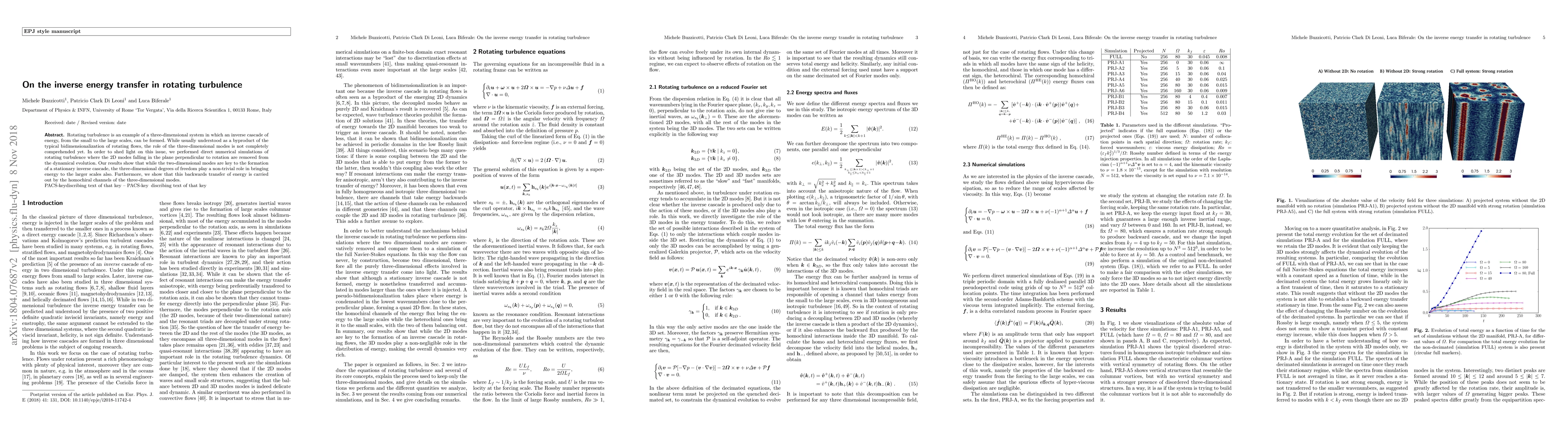 This paper investigates the inverse energy cascade in rotating turbulence, demonstrating through direct numerical simulations that both two-dimensional and three-dimensional modes contribute to energy transfer to larger scales. The study highlights the importance of homochiral three-dimensional modes in this process.