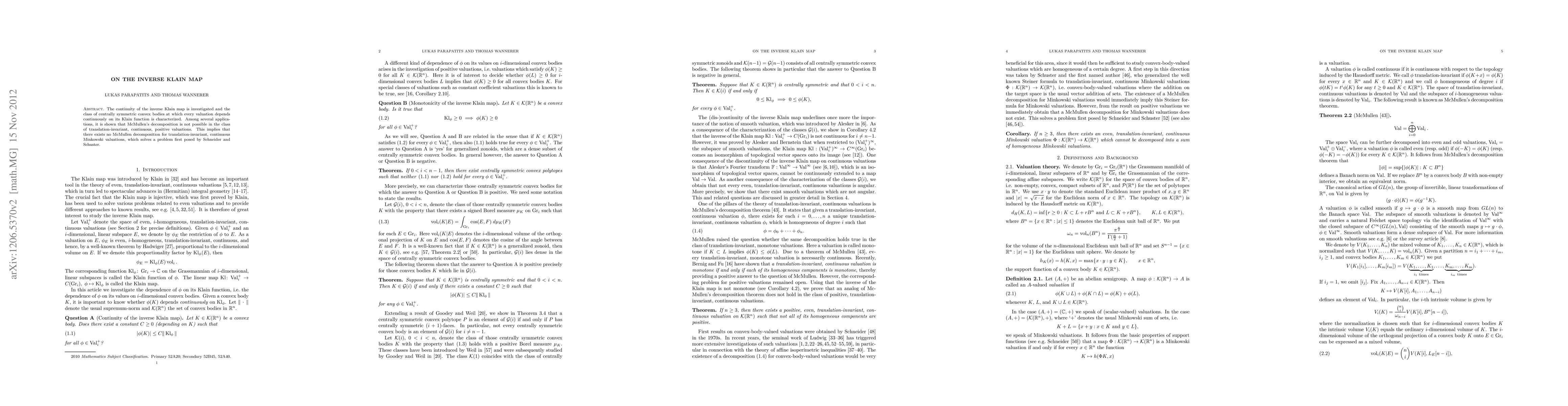 The paper investigates the continuity of the inverse Klain map and characterizes centrally symmetric convex bodies where valuations depend continuously on their Klain functions. It concludes that McMullen's decomposition is infeasible for translation-invariant, continuous Minkowski valuations, resolving a question initially raised by Schneider and Schuster.