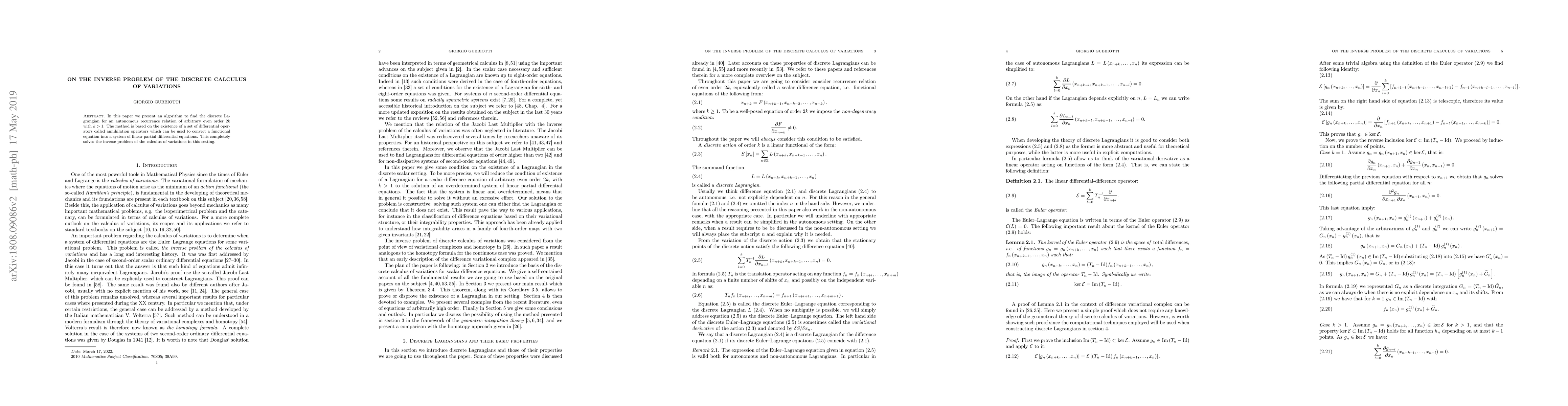 In this paper we present an algorithm to find the discrete Lagrangian for an autonomous recurrence relation of arbitrary even order $2k$ with $k>1$. The method is based on the existence of a set of differential operators called annihilation operators which can be used to convert a functional equation into a system of linear partial differential equations. This completely solves the inverse problem of the calculus of variations in this setting.