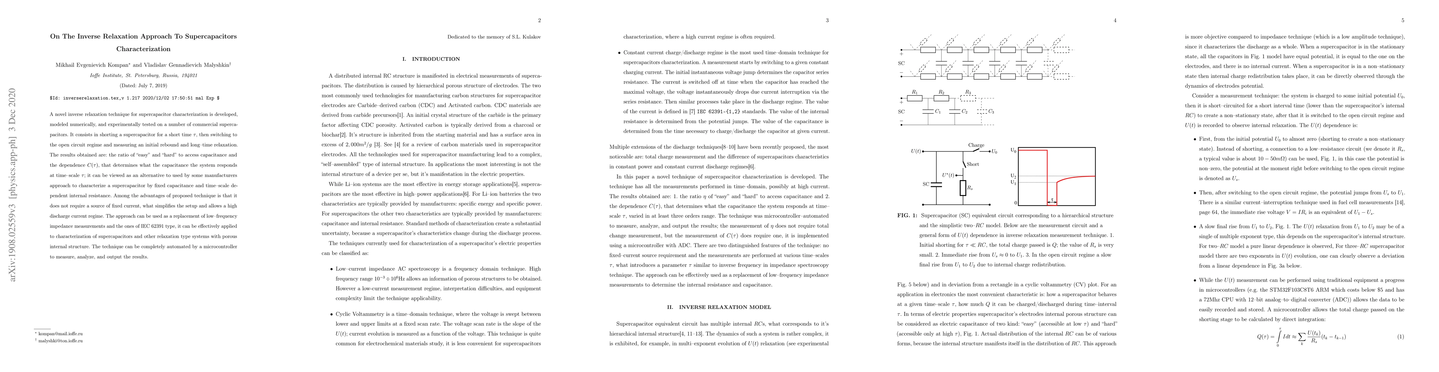 Researchers develop a novel inverse relaxation technique to characterize supercapacitors, allowing for high discharge current testing and automatic measurement.