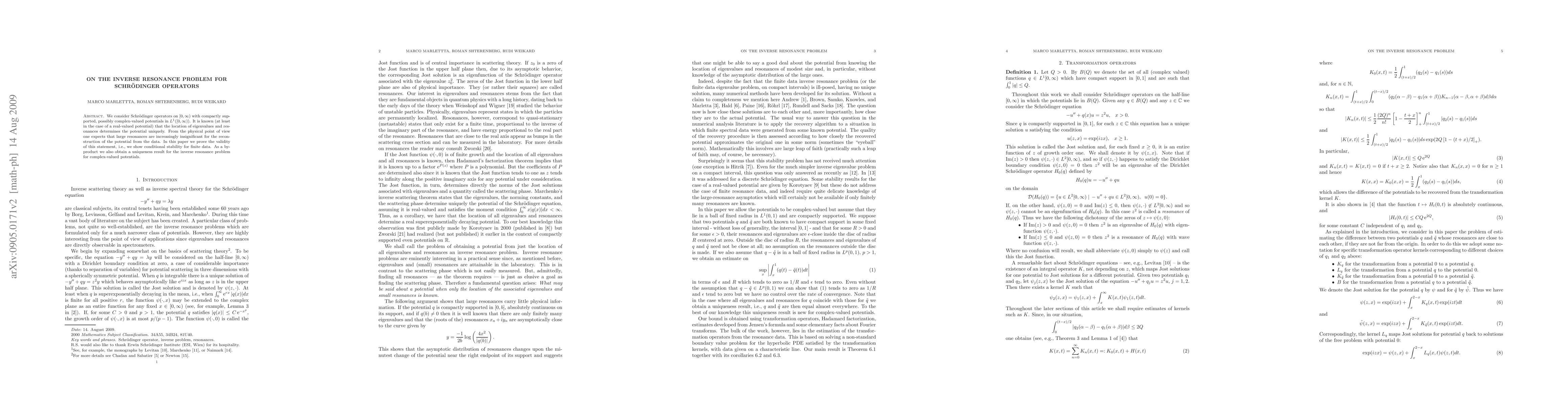 Researchers prove that large resonances have a minimal impact on reconstructing potentials from data, showing conditional stability for finite data.