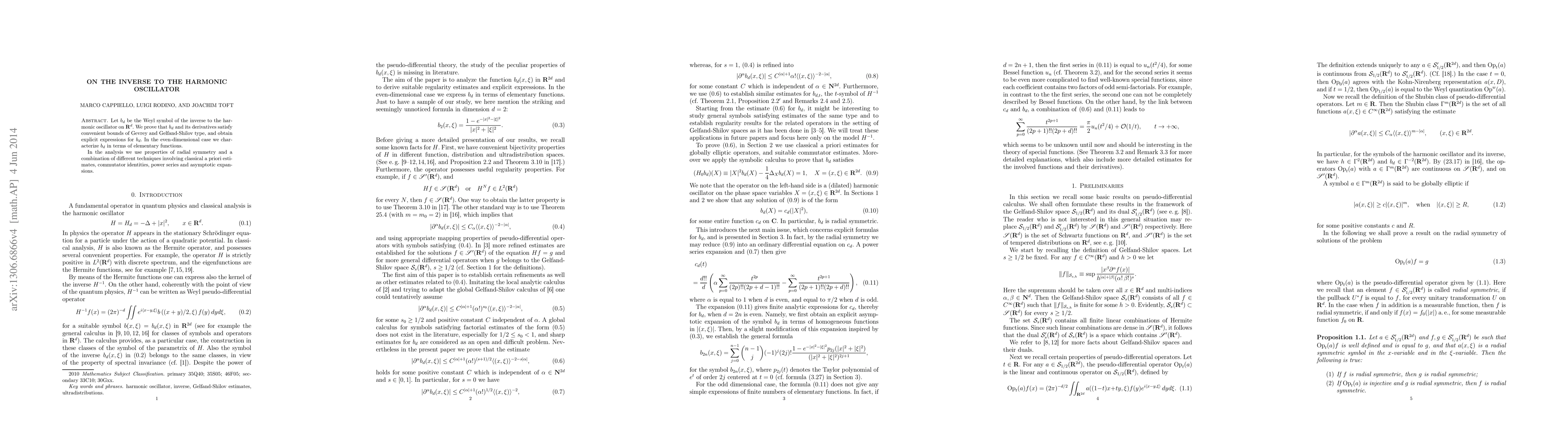 This paper investigates the inverse of the harmonic oscillator in d-dimensional space, proving it satisfies convenient bounds and providing explicit expressions for its Weyl symbol.
