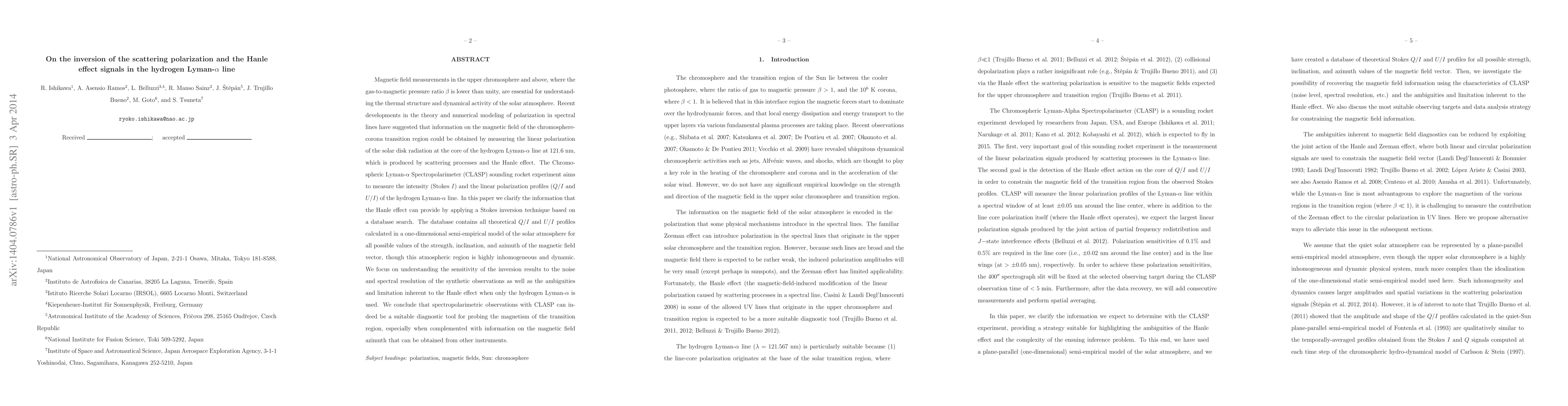 This paper investigates the inversion of scattering polarization and the Hanle effect signals in the hydrogen Lyman-$\alpha$ line to measure magnetic fields in the solar atmosphere. It uses a Stokes inversion technique and a database to clarify the information provided by the Hanle effect, concluding that spectropolarimetric observations can be a suitable diagnostic tool for probing the transition region's magnetism.