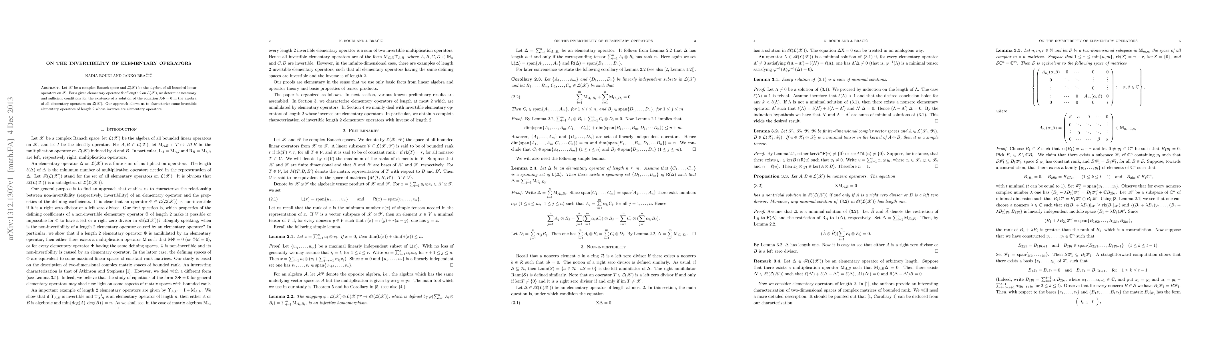 This paper explores conditions for invertibility of elementary operators in a complex Banach space, focusing on necessary and sufficient criteria for solving the equation X ε = 0.