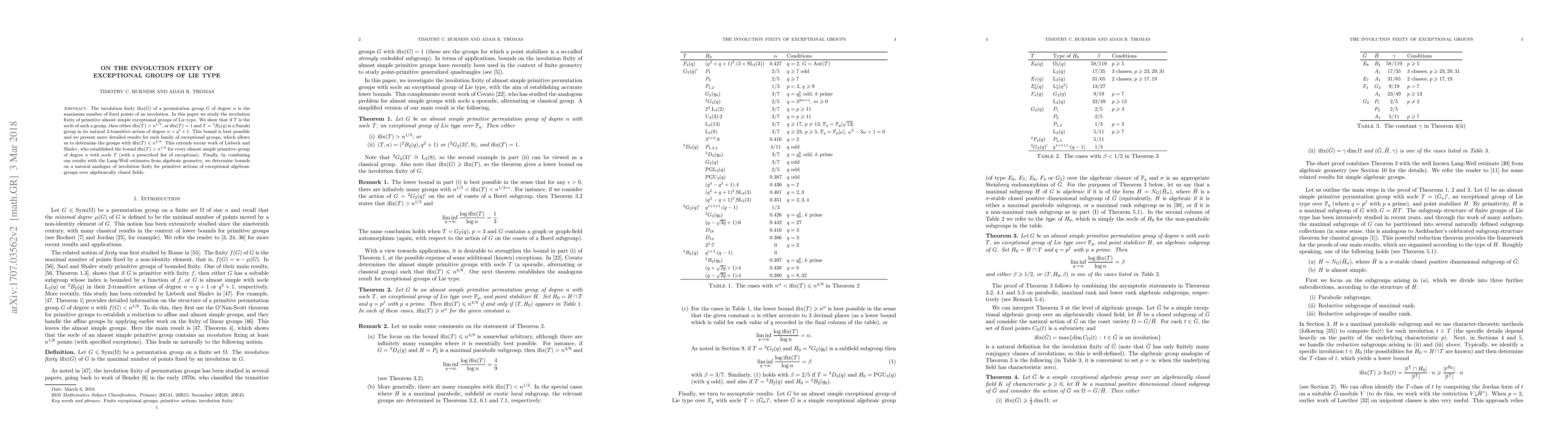Researchers studied the involution fixity of primitive almost simple exceptional groups of Lie type, establishing a bound on how many fixed points an involution can have in these groups.