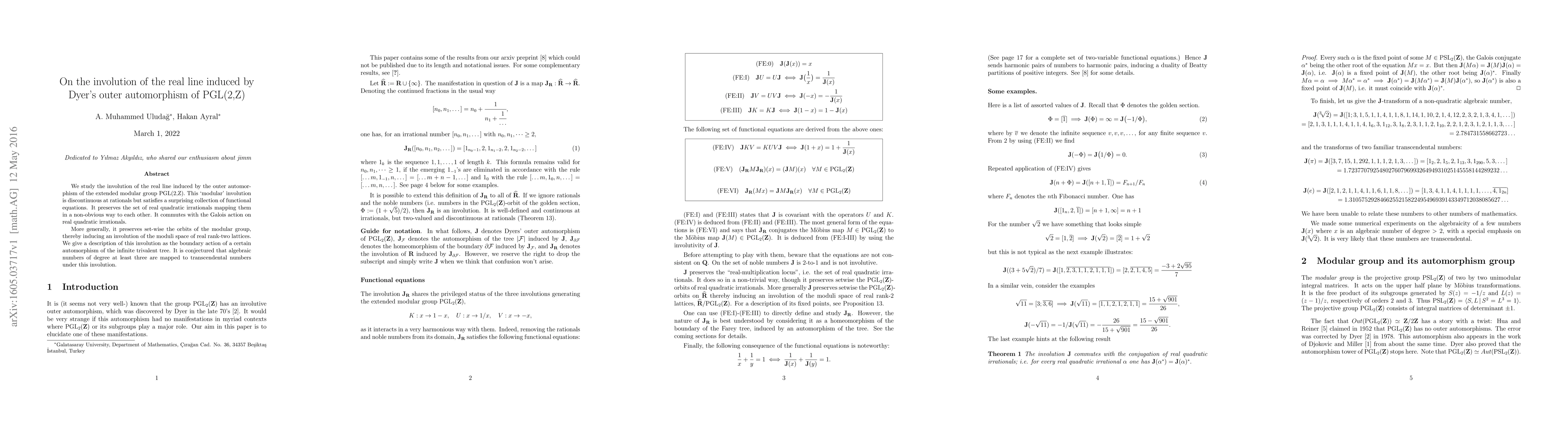 We study the involution of the real line induced by the outer automorphism of the extended modular group PGL(2,Z). This `modular' involution is discontinuous at rationals but satisfies a surprising collection of functional equations. It preserves the set of real quadratic irrationals mapping them in a non-obvious way to each other. It commutes with the Galois action on real quadratic irrationals. More generally, it preserves set-wise the orbits of the modular group, thereby inducing an involution of the moduli space of real rank-two lattices. We give a description of this involution as the boundary action of a certain automorphism of the infinite trivalent tree. It is conjectured that algebraic numbers of degree at least three are mapped to transcendental numbers under this involution.
