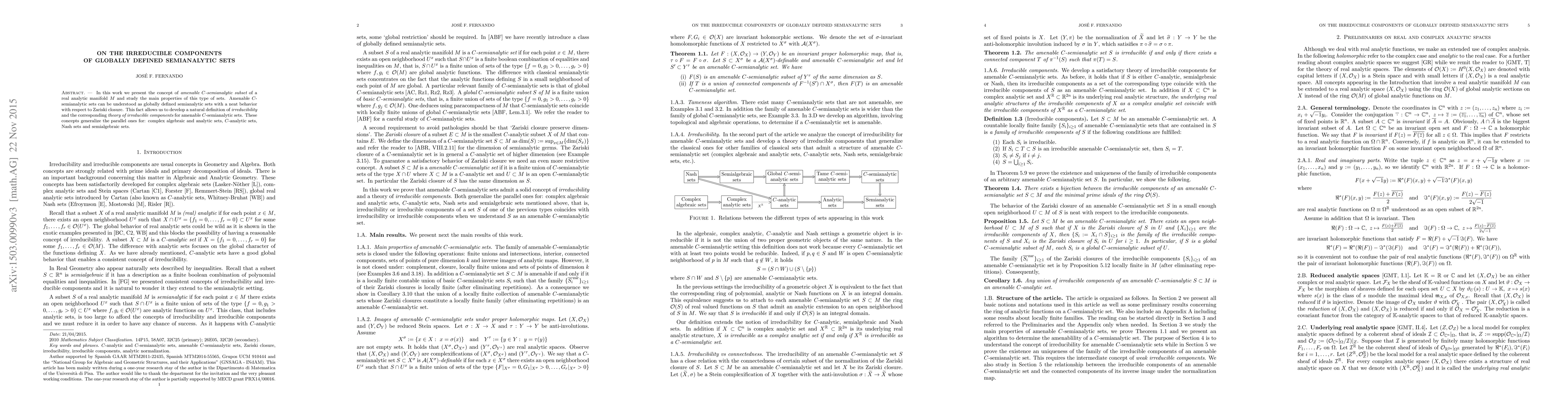 Researchers introduce a new concept for globally defined semianalytic sets with properties allowing for the definition of irreducibility and components that generalize theories for complex algebraic and analytic sets.