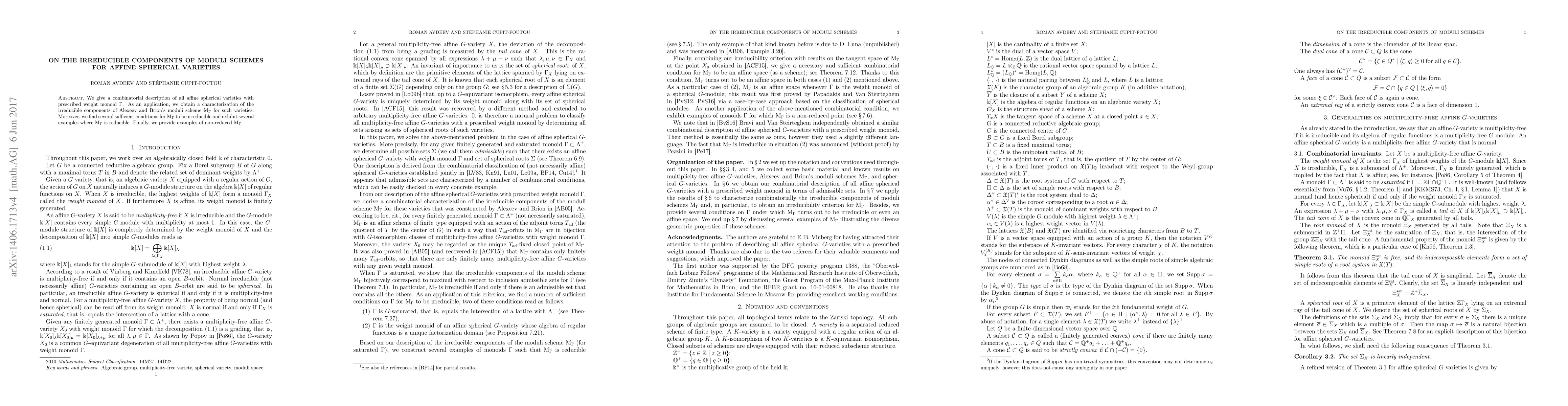 This paper provides a combinatorial description of affine spherical varieties and characterizes the irreducible components of Alexeev and Brion's moduli scheme $\mathrm M_\Gamma$. It also identifies conditions for $\mathrm M_\Gamma$ to be irreducible and presents examples where it is reducible, including instances of non-reduced $\mathrm M_\Gamma$.