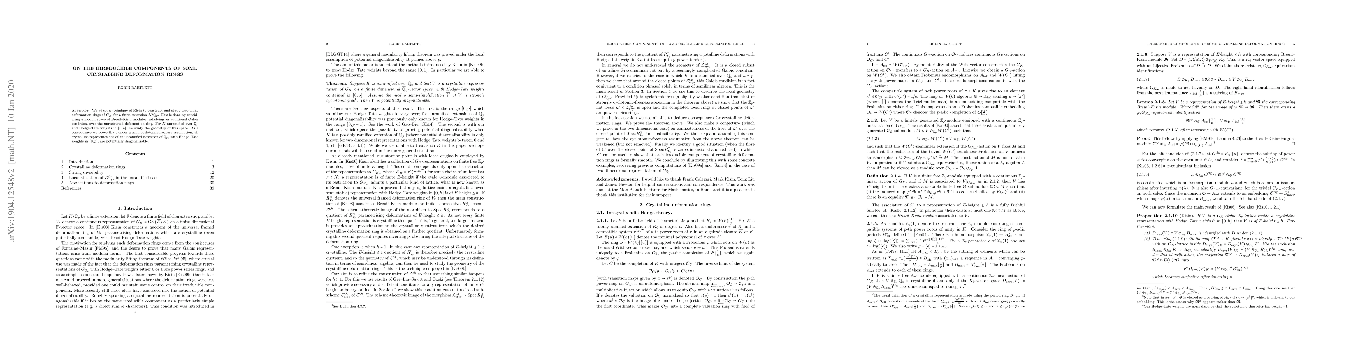 This paper constructs and examines crystalline deformation rings for $G_K$ using Kisin's technique, focusing on Breuil-Kisin modules over the universal deformation ring. It proves that under mild assumptions, all crystalline representations of unramified extensions of $\mathbb{Q}_p$ with specified weights are potentially diagonalisable.