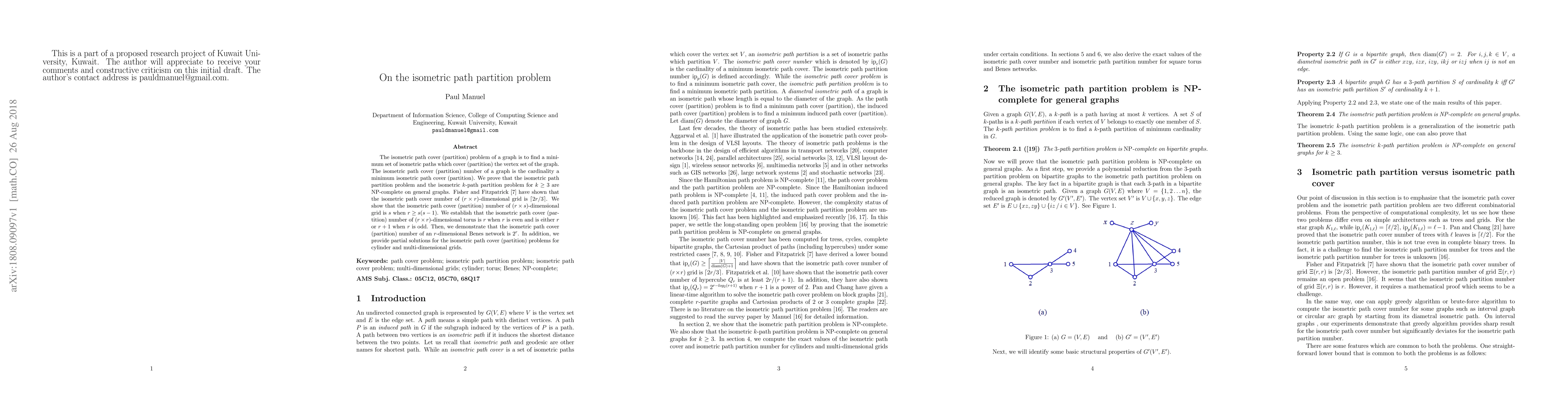 Researchers solved several problems related to isometric path covers in various graph structures, including grids, torus, and Benes networks, finding optimal solutions for some cases.