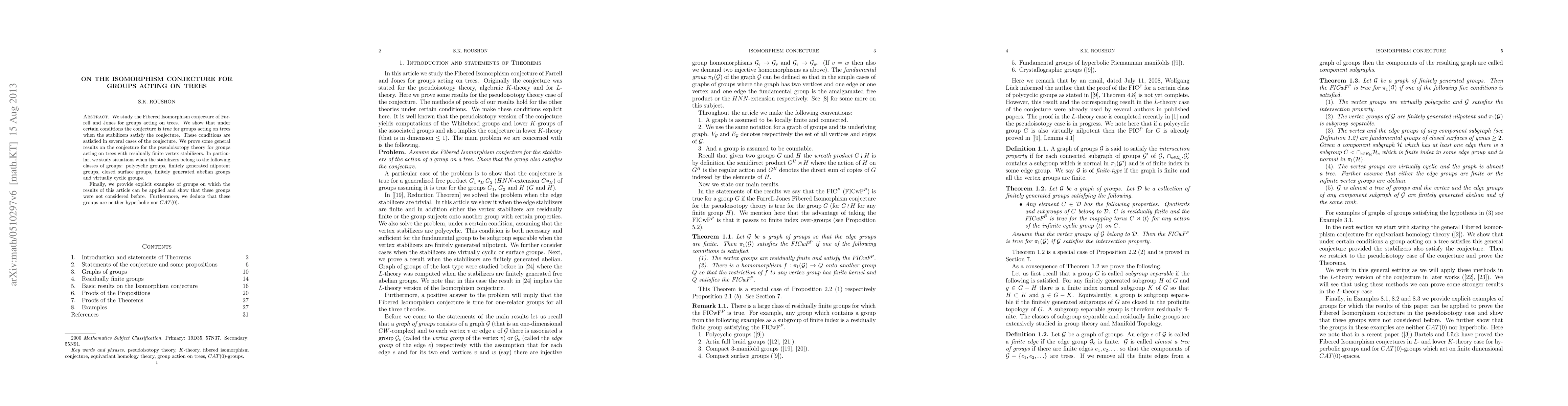 This work distinguishes itself by focusing on the interplay between the Fibered Isomorphism conjecture and group actions on trees, providing new examples and classifications for groups where the conjecture holds true.