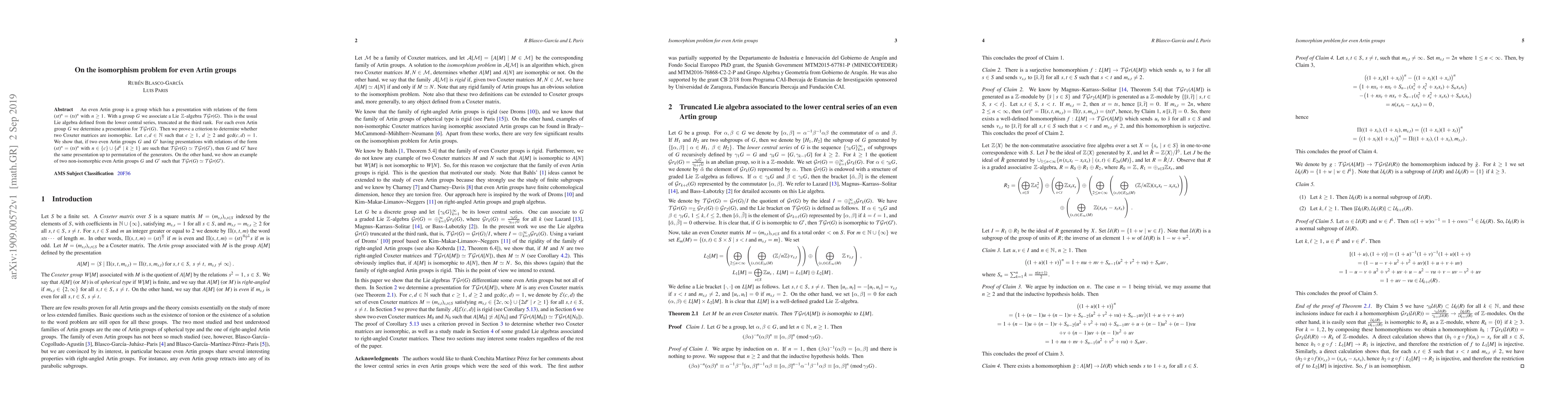 This paper investigates the isomorphism problem for even Artin groups by analyzing Lie $oldsymbol{ extrm{Z}}$-algebras associated with these groups, leading to a criterion for determining whether two Coxeter matrices are isomorphic.