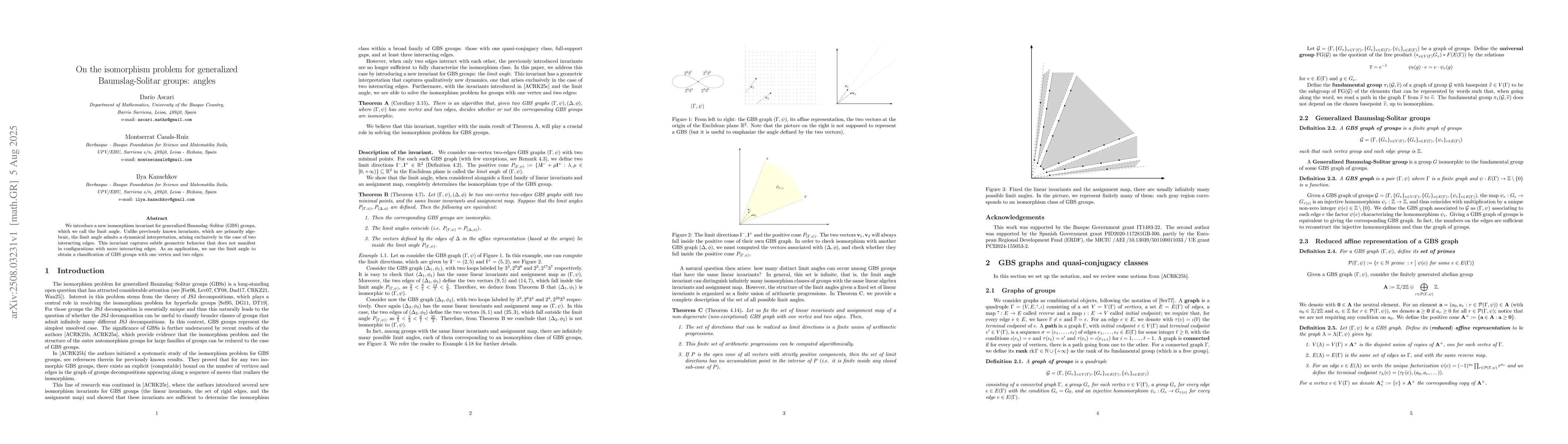 We introduce a new isomorphism invariant for generalized Baumslag-Solitar (GBS) groups, which we call the limit angle. Unlike previously known invariants, which are primarily algebraic, the limit angle admits a dynamical interpretation, arising exclusively in the case of two interacting edges. This invariant captures subtle geometric behavior that does not manifest in configurations with more interacting edges. As an application, we use the limit angle to obtain a classification of GBS groups with one vertex and two edges.