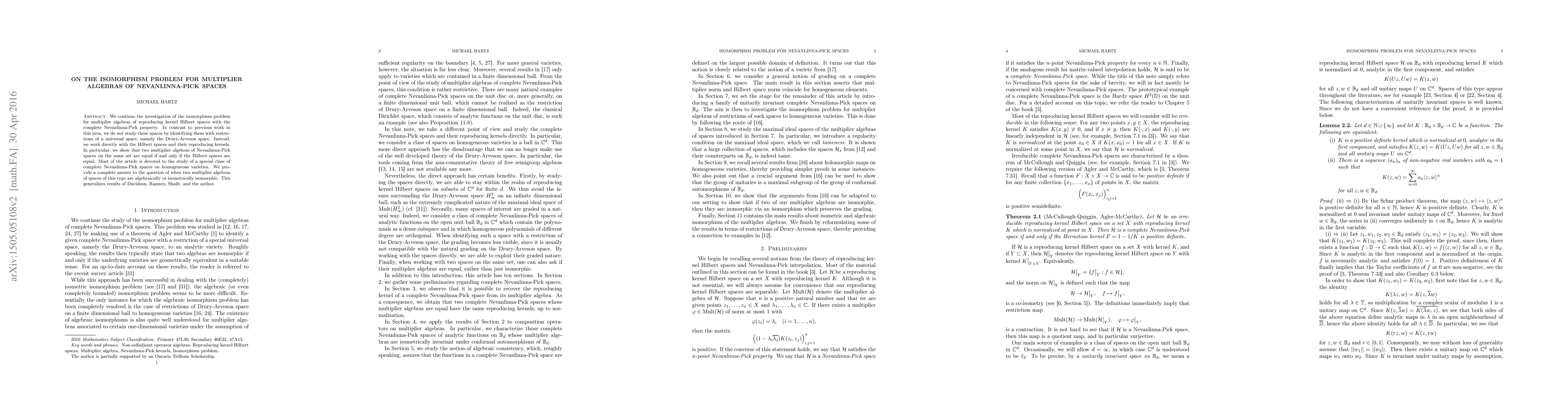 This paper investigates the isomorphism problem for multiplier algebras of reproducing kernel Hilbert spaces with the complete Nevanlinna-Pick property, focusing on direct analysis of these spaces rather than through the Drury-Arveson space. It establishes that equality of multiplier algebras for such spaces on the same set is equivalent to the equality of the underlying Hilbert spaces.
