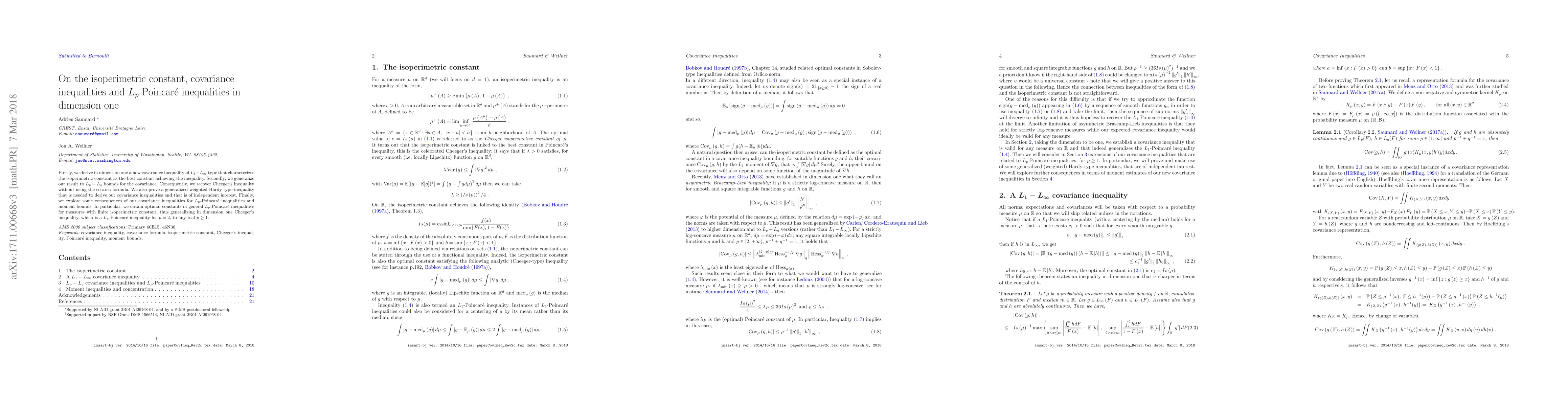 This paper derives a new $L_{1}-L_{\infty}$ covariance inequality in dimension one, characterizing the isoperimetric constant, and generalizes it to $L_{p}-L_{q}$ bounds. It also proves a weighted Hardy inequality and uses these results to derive optimal constants in $L_{p}$-Poincaré inequalities for measures with finite isoperimetric constant, extending Cheeger's inequality to any $p \geq 1$.