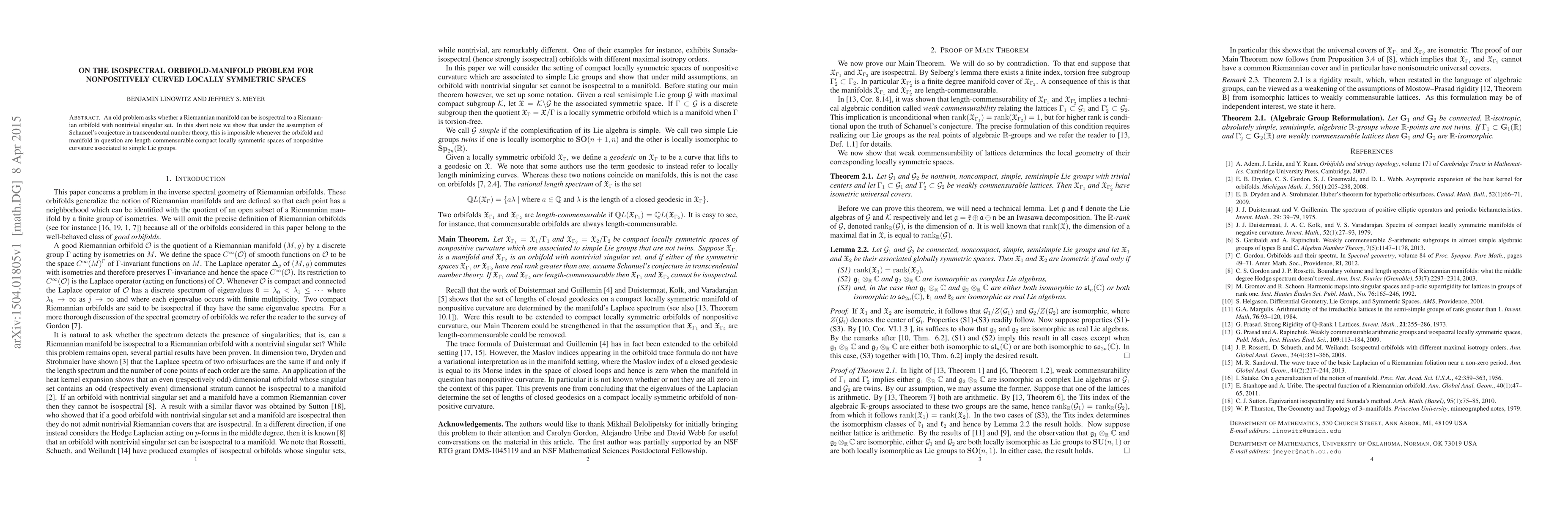 An old problem asks whether a Riemannian manifold can be isospectral to a Riemannian orbifold with nontrivial singular set. In this short note we show that under the assumption of Schanuel's conjecture in transcendental number theory, this is impossible whenever the orbifold and manifold in question are length-commensurable compact locally symmetric spaces of nonpositive curvature associated to simple Lie groups.