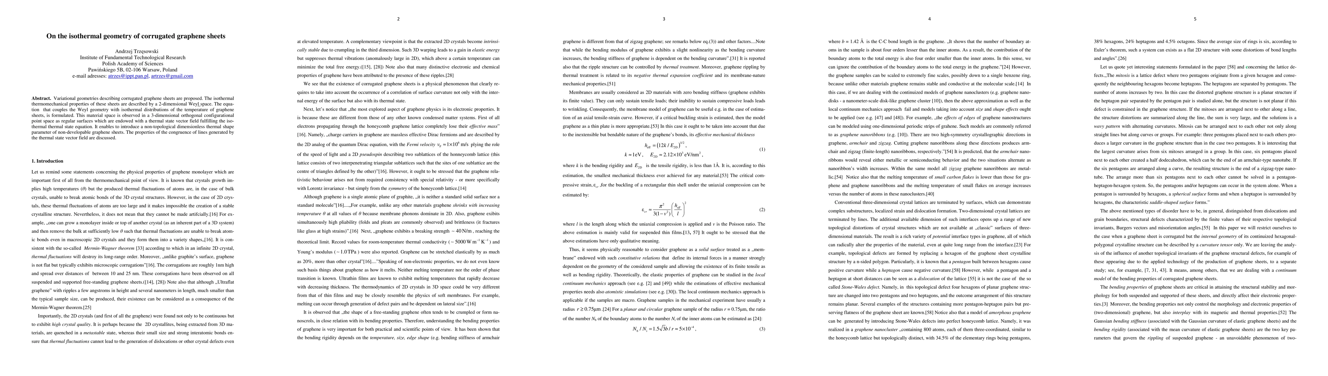 This paper proposes variational geometries for corrugated graphene sheets and describes their isothermal thermomechanical properties using a 2-dimensional Weyl space. It formulates an equation linking the Weyl geometry with isothermal temperature distributions, introducing a non-topological thermal shape parameter for non-developable graphene sheets.