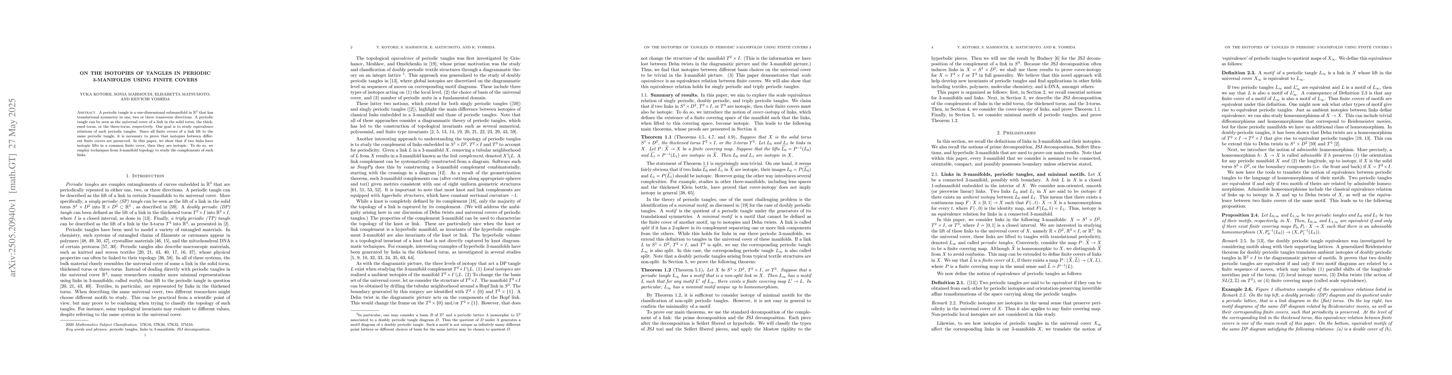 This work extends previous research on periodic tangles by providing a method to show isotopies between finite covers of links, filling a gap in understanding equivalence relations of such tangles in 3-manifolds.
