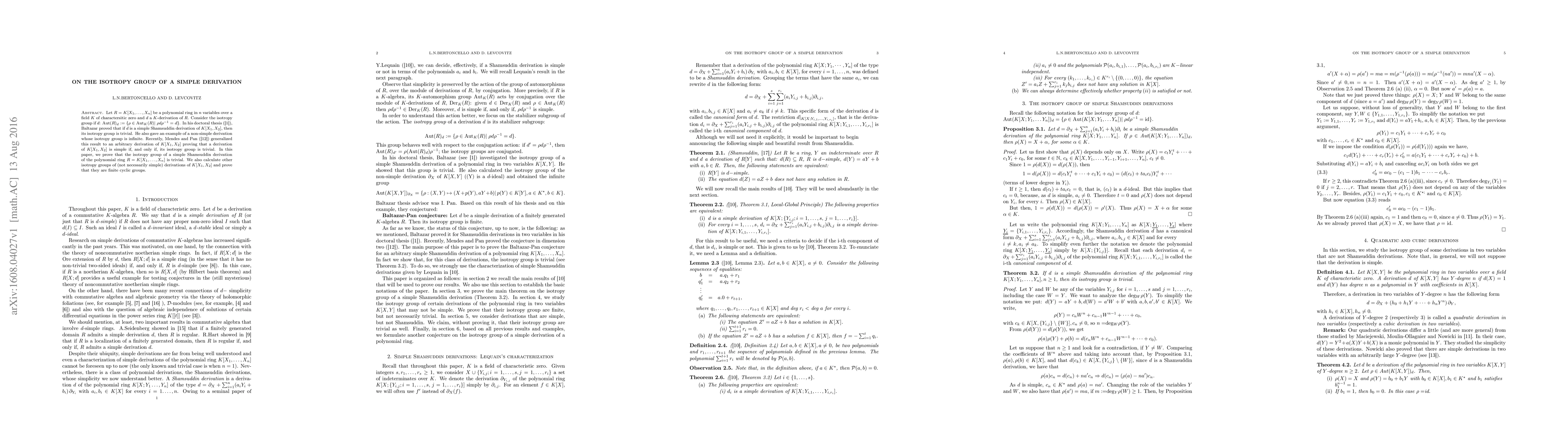 Let $R=K[X_1,\dots, X_n]$ be a polynomial ring in $n$ variables over a field $K$ of charactersitic zero and $d$ a $K$-derivation of $R$. Consider the isotropy group if $d$: $ \text{Aut}(R)_d :=\{\rho \in \text{Aut}_K(R)|\; \rho d \rho^{-1}=d\}$. In his doctoral thesis, Baltazar proved that if $d$ is a simple Shamsuddin derivation of $K[X_1,X_2]$, then its isotropy group is trivial. He also gave an example of a non-simple derivation whose isotropy group is infinite. Recently, Mendes and Pan generalized this result to an arbitrary derivation of $K[X_1,X_2]$ proving that a derivation of $K[X_1,X_2]$ is simple if, and only if, its isotropy group is trivial. In this paper, we prove that the isotropy group of a simple Shamsuddin derivation of the polynomial ring $R=K[X_1,\dots, X_n]$ is trivial. We also calculate other isotropy groups of (not necessarily simple) derivations of $K[X_1,X_2]$ and prove that they are finite cyclic groups.