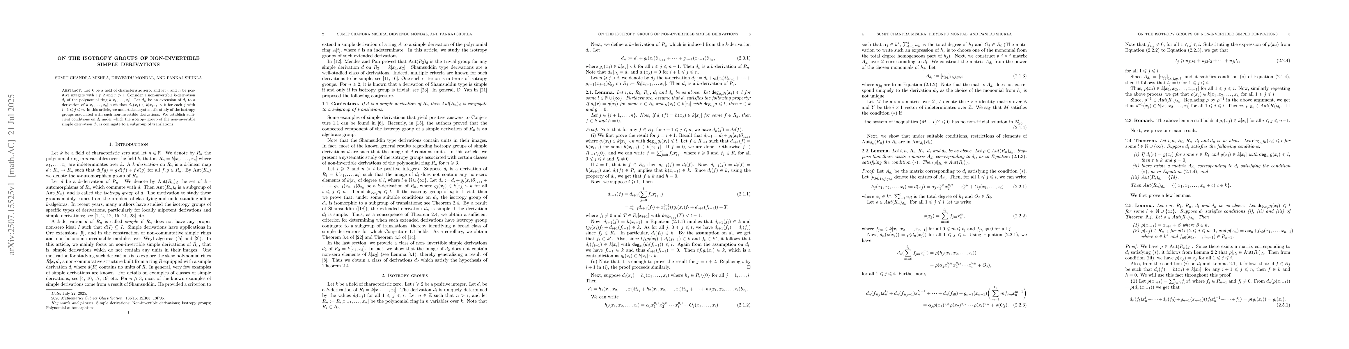 Let $k$ be a field of characteristic zero, and let $i$ and $n$ be positive integers with $i\geq 2$ and $n>i$. Consider a non-invertible $k$-derivation $d_i$ of the polynomial ring $k[x_1,\ldots,x_i]$. Let $d_n$ be an extension of $d_i$ to a derivation of $k[x_1,\ldots, x_n]$ such that $d_n(x_j)\in k[x_{j-1}]\setminus k$ for each $j$ with $i+1 \leq j\leq n$. In this article, we undertake a systematic study of the isotropy groups associated with such non-invertible derivations. We establish sufficient conditions on $d_i$ under which the isotropy group of the non-invertible simple derivation $d_n$ is conjugate to a subgroup of translations.