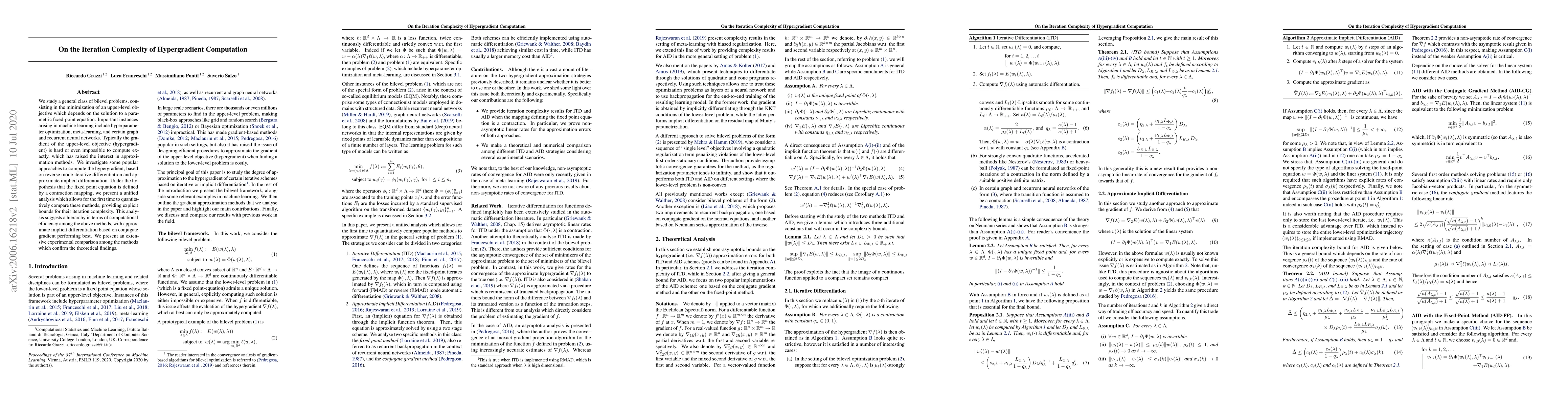 This paper investigates the iteration complexity of computing hypergradients for bilevel optimization problems, focusing on methods like reverse mode iterative differentiation and approximate implicit differentiation. It provides a unified analysis under the assumption of a contraction mapping, revealing that approximate implicit differentiation using conjugate gradient is the most efficient. Experimental results corroborate these theoretical findings.
