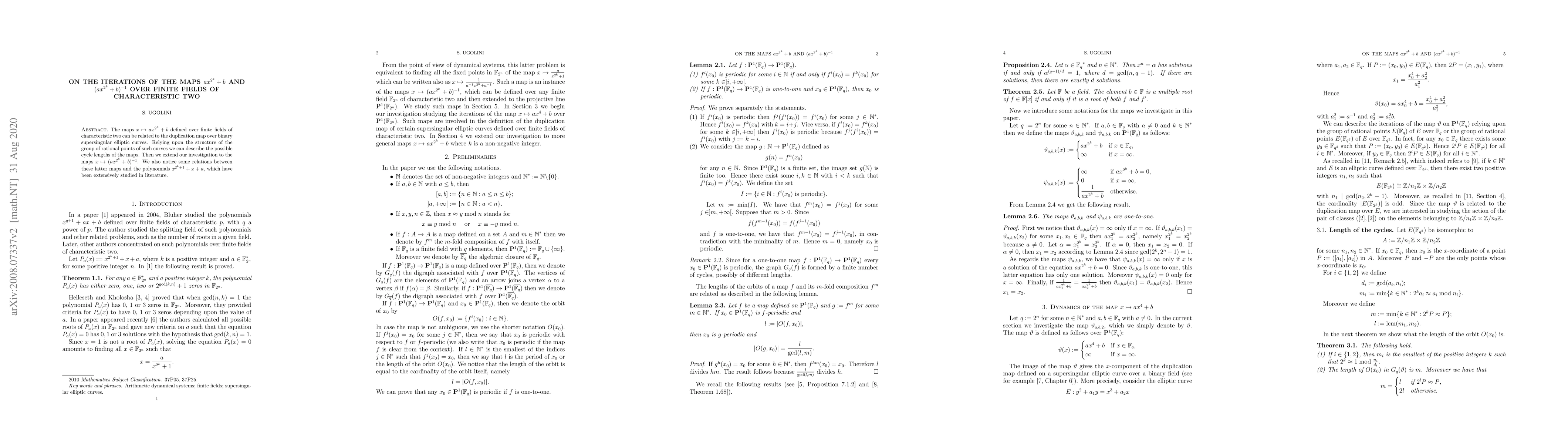 The maps $x \mapsto ax^{2^k}+b$ defined over finite fields of characteristic two can be related to the duplication map over binary supersingular elliptic curves. Relying upon the structure of the group of rational points of such curves we can describe the possible cycle lengths of the maps. Then we extend our investigation to the maps $x \mapsto (ax^{2^k}+b)^{-1}$. We also notice some relations between these latter maps and the polynomials $x^{2^k+1} + x +a$, which have been extensively studied in literature.