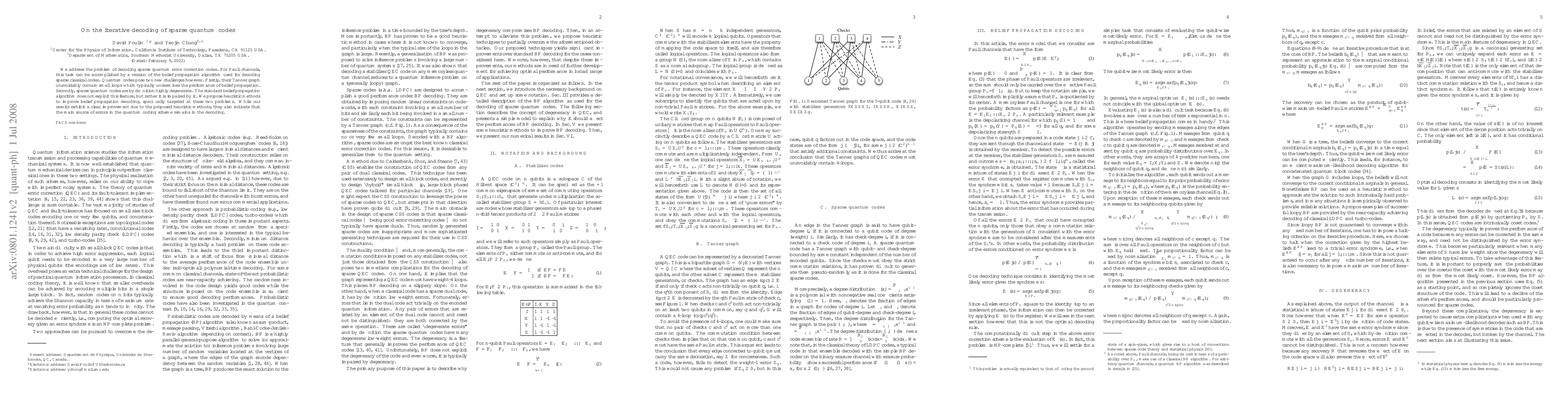 The paper introduces heuristic methods to improve belief propagation decoding for sparse quantum codes, specifically targeting small loops in Tanner graphs and code degeneracy.