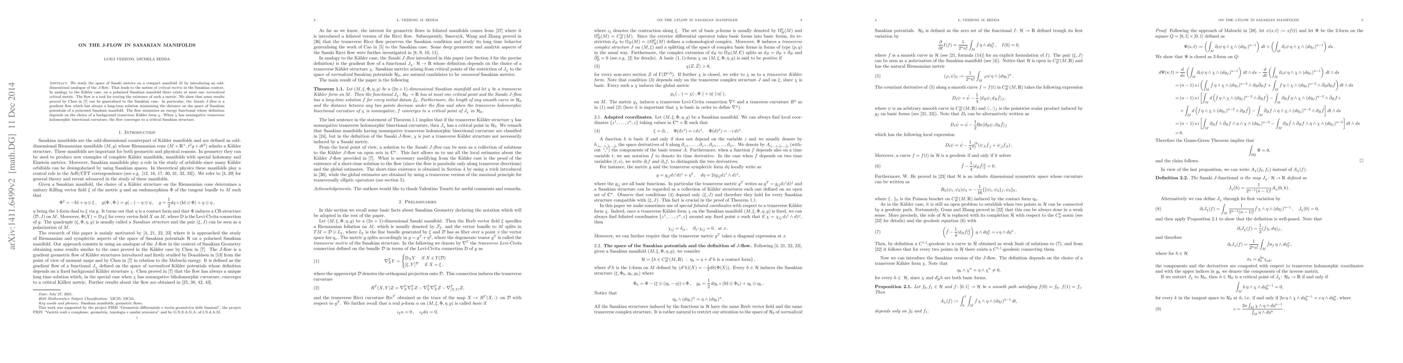 This research introduces the J-flow in Sasakian manifolds, an odd-dimensional counterpart of the J-flow in Kähler geometry. It establishes that on a polarized Sasakian manifold, there exists at most one normalized critical metric, analogous to the Kähler case. The J-flow is shown to be a gradient flow minimizing an energy functional, ensuring a long-time solution minimizing the distance on the space of Sasakian potentials. Under certain conditions on the background transverse Kähler form, the flow converges to a critical Sasakian structure.