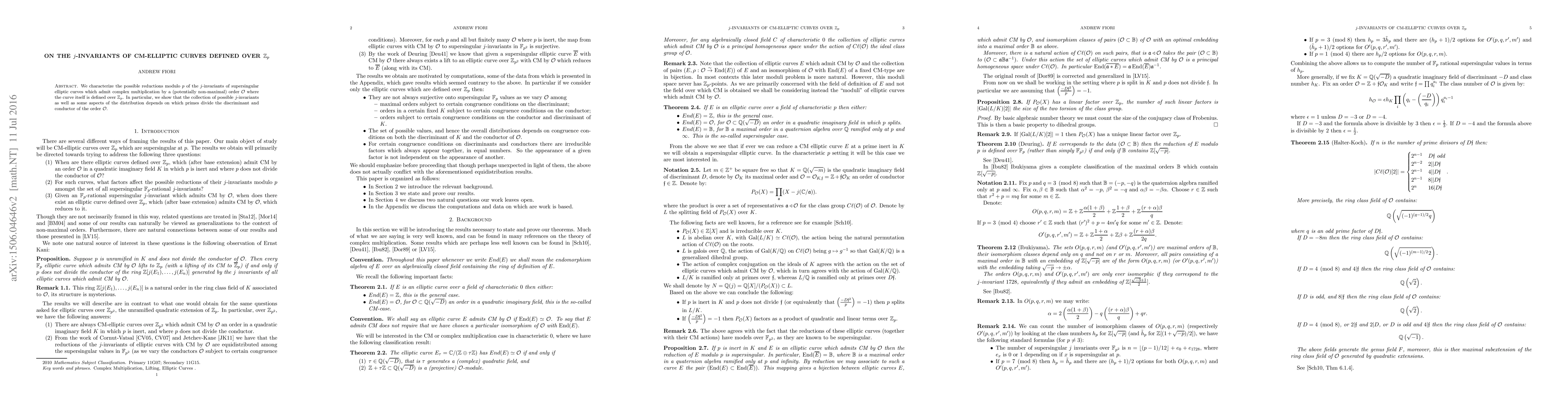 This paper characterizes the possible $j$-invariants of elliptic curves with complex multiplication defined over $ ext{Z}_p$, revealing relationships between $j$-invariant distribution and prime divisors of discriminant and conductor.