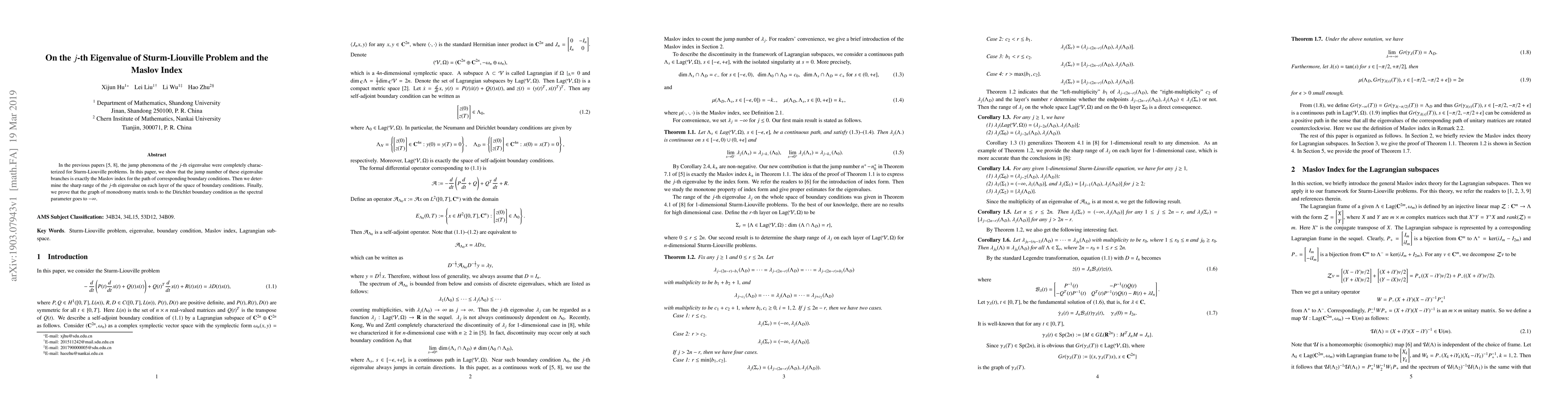 In the previous papers \cite{HLWZ,KWZ}, the jump phenomena of the $j$-th eigenvalue were completely characterized for Sturm-Liouville problems. In this paper, we show that the jump number of these eigenvalue branches is exactly the Maslov index for the path of corresponding boundary conditions. Then we determine the sharp range of the $j$-th eigenvalue on each layer of the space of boundary conditions. Finally, we prove that the graph of monodromy matrix tends to the Dirichlet boundary condition as the spectral parameter goes to $-\infty$.