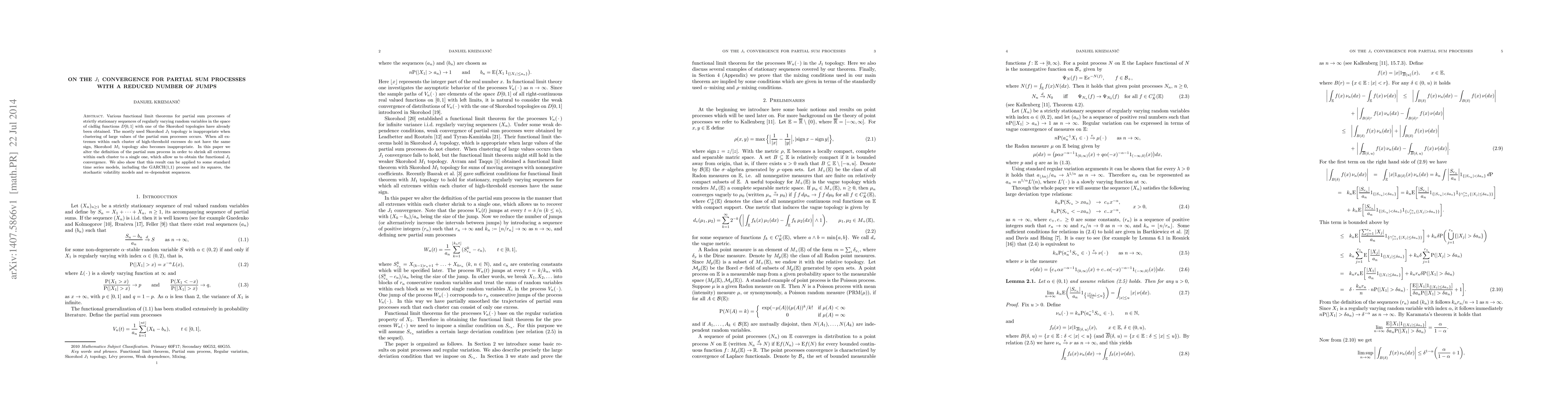 Researchers found a way to achieve $J_{1}$ convergence for partial sum processes with fewer jumps by altering the process definition to cluster extremes within clusters into a single point. This result applies to various time series models.