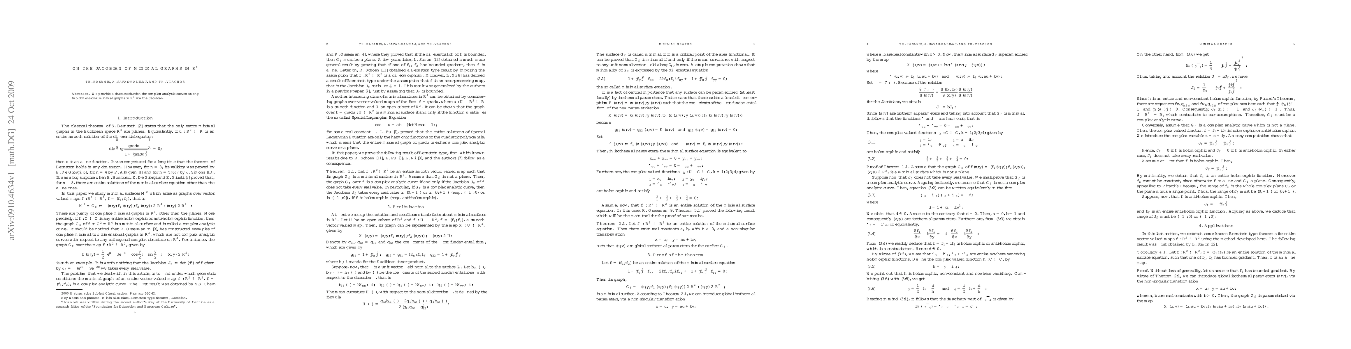 This paper characterizes complex analytic curves within two-dimensional minimal graphs in $\mathbb{R}^{4}$ using the Jacobian, providing a mathematical tool to distinguish these curves. The study enhances the understanding of minimal surfaces in higher-dimensional spaces.