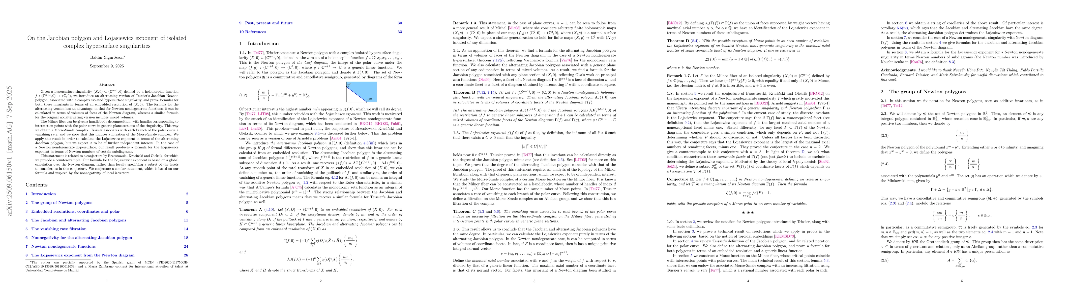 Given a hypersurface singularity $(X,0) \subset (\mathbb{C}^{n+1},0)$ defined by a holomorphic function $f:(\mathbb{C}^{n+1},0) \to (\mathbb{C},0)$, we introduce an alternating version of Teissier's Jacobian Newton polygon, associated with a complex isolated hypersurface singularity, and prove formulas for both these invariants in terms of an embedded resolution of $(X,0)$. The formula for the alternating version has an advantage, in that for Newton nondegenerate functions, it can be calculated in terms of volumes of faces of the Newton diagram, whereas a similar formula for the original nonalternating version includes mixed volumes. The Milnor fiber can be given a handlebody decomposition, with handles corresponding to intersection points with the polar curve in generic plane sections of the singularity. This way we obtain a Morse-Smale complex. Teissier associates with each branch of the polar curve a vanishing rate, and we show that this induces a filtration of the Morse-Smale complex. We apply this result in order to calculate the {\L}ojasiewicz exponent in terms of the alternating Jacobian polygon, but we expect it to be of further independent interest. In the case of a Newton nondegenerate hypersurface, our result produces a formula for the {\L}ojasiewicz exponent in terms of Newton numbers of certain subdiagrams. This statement is related to a conjecture by Brzostowski, Krasi\'nski and Oleksik, for which we provide a counterexample. Our formula for the {\L}ojasiewicz exponent is based on a global calculation over the Newton diagram, rather than locally specifying a subset of the facets to consider, as in this conjecture. We conjecture a similar statement, which is based on our formula and inspired by the nonnegativity of local $h$-vectors.