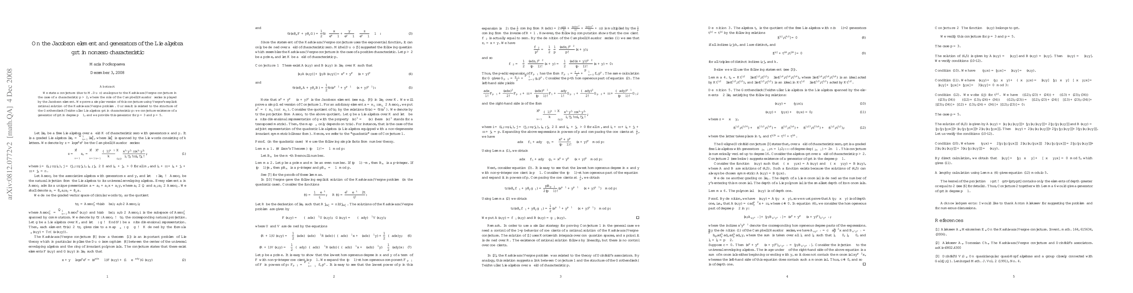 Researchers prove a simpler version of Duflo's conjecture about the Lie algebra $rak{grt}$ in characteristic $p$, predicting the existence of generators in degree $p-1$ for specific values of $p$.