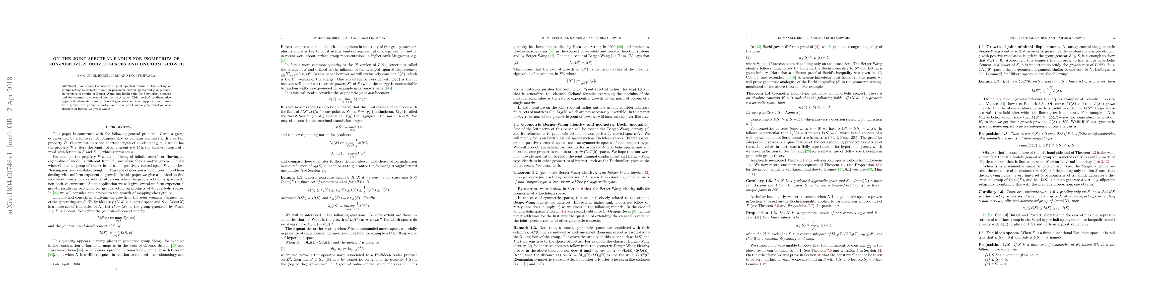 This research paper redefines joint spectral radius for isometries in non-positively curved spaces, providing geometric interpretations for $delta$-hyperbolic spaces and non-compact symmetric spaces. It offers new hyperbolic elements in classical geometric contexts and presents a novel proof and generalization of Besson-Courtois-Gallot's theorem on uniform growth.