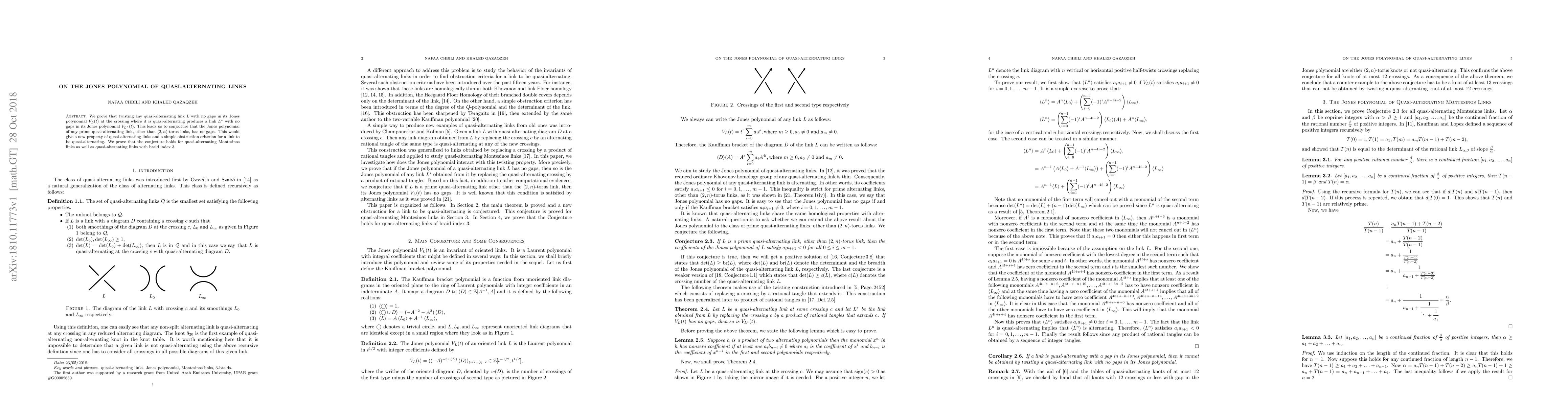 The paper introduces a method for manipulating quasi-alternating links via twisting and preserves their Jones polynomial properties, contributing to the structural understanding of these links.