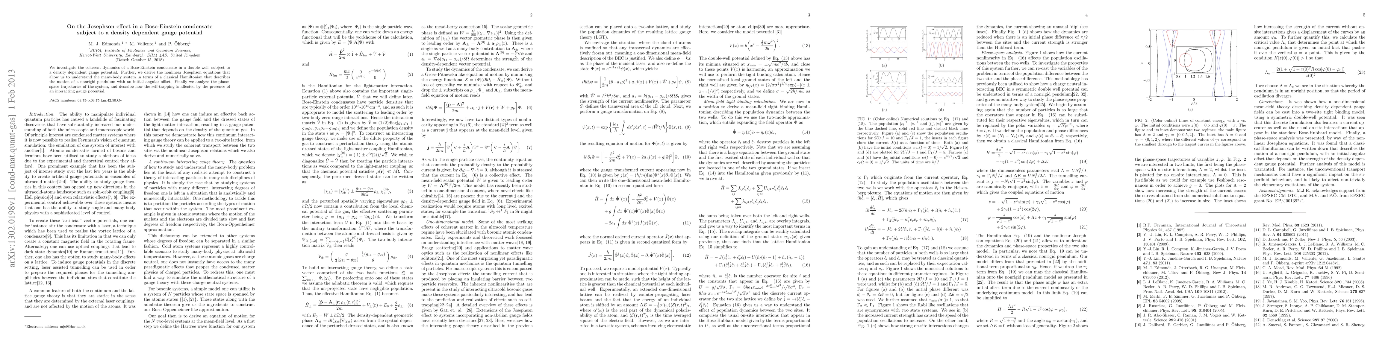 We investigate the coherent dynamics of a Bose-Einstein condensate in a double well, subject to a density dependent gauge potential. Further, we derive the nonlinear Josephson equations that allow us to understand the many-body system in terms of a classical Hamiltonian that describes the motion of a nonrigid pendulum with an initial angular offset. Finally we analyze the phase-space trajectories of the system, and describe how the self-trapping is affected by the presence of an interacting gauge potential.