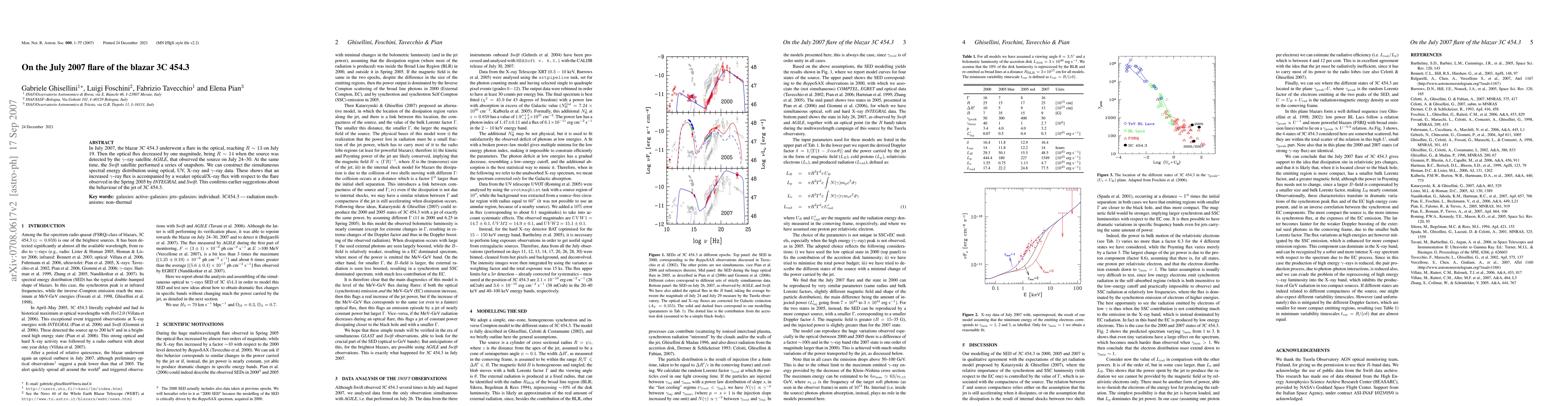 The blazar 3C 454.3 experienced a significant optical flare in July 2007, followed by a gamma-ray observation by the AGILE satellite. The flare's spectral energy distribution indicates a stronger gamma-ray flux compared to a similar 2005 event, suggesting a different behavior of the jet.