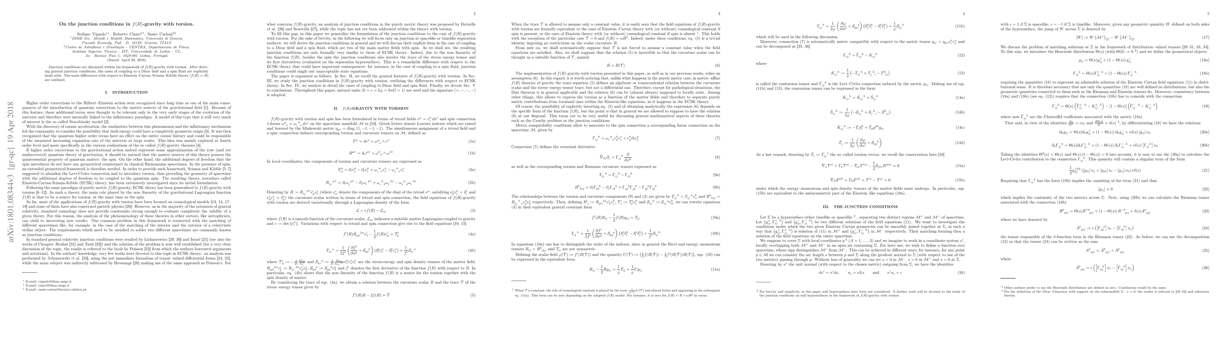 This paper derives junction conditions for $f(R)$-gravity with torsion, contrasting them with Einstein-Cartan theory, and specifically examines their application to a Dirac field and a spin fluid. Key differences from Einstein-Cartan theory are highlighted.
