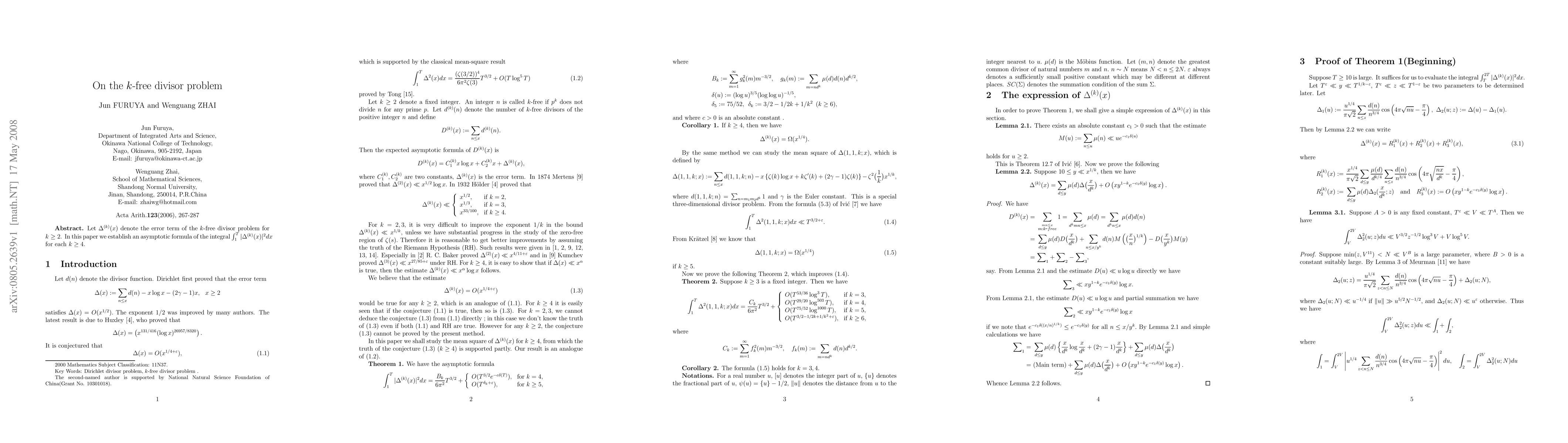 This paper establishes an asymptotic formula for the integral of the squared error term in the $k$-free divisor problem, providing insight into the behavior of this mathematical concept for large values of $k$. The findings have implications for understanding the distribution of divisors among integers.