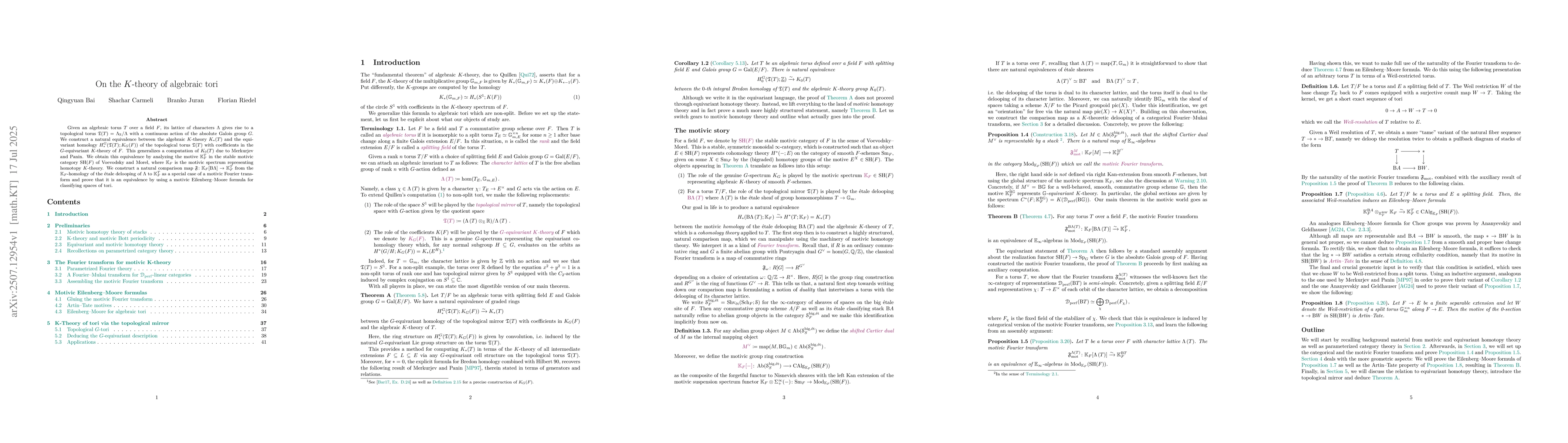 This research establishes an equivalence between the algebraic K-theory of an algebraic torus T and the equivariant homology of its associated topological torus, generalizing previous work on K_0(T). It uses Voevodsky's stable motivic category and a motivic Fourier transform to construct a comparison map, proving its equivalence via a motivic Eilenberg-Moore formula.